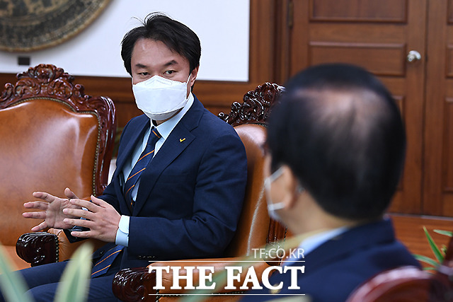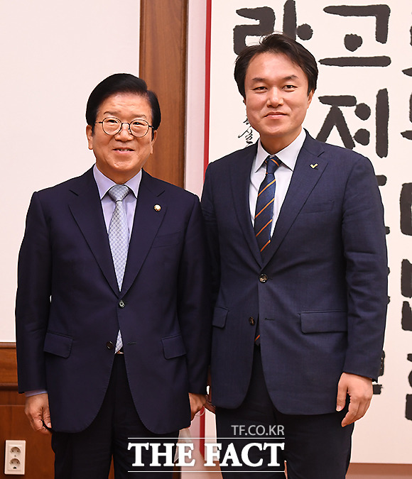 [더팩트ㅣ국회=이새롬 기자] 김종철 정의당 신임 대표가 13일 오전 서울 여의도 국회 의장실을 찾아 박병석 국회의장을 예방하고 있다.