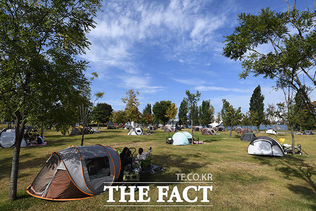 [더팩트ㅣ남용희 기자] 사회적 거리두기가 1단계로 하향 조정돼 한강공원 밀집 지역 통제가 해제된 13일 오후 서울 여의도 한강공원 일대에서 시민들이 여유를 만끽하고 있다.