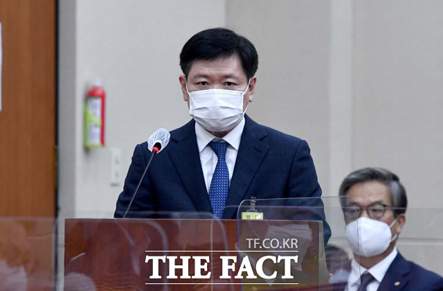[더팩트 | 국회=남윤호 기자] 강성모 우리은행 상무가 13일 오후 서울 여의도 국회에서 열린 정무위원회의 금융감독원에 대한 국정감사에 증인으로 출석해 의원 질의에 답변하고 있다.ilty012@tf.co.kr사진영상기획부 photo@tf.co.kr