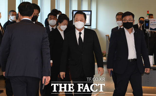 [더팩트 | 사진공동취재단] 박용만 대한상공회의소 회장이 26일 오전 고 이건희 삼성그룹 회장 빈소가 마련된 서울 강남구 서울삼성병원 장례식장에서 조문을 마친 후 장례식장을 나서고 있다.