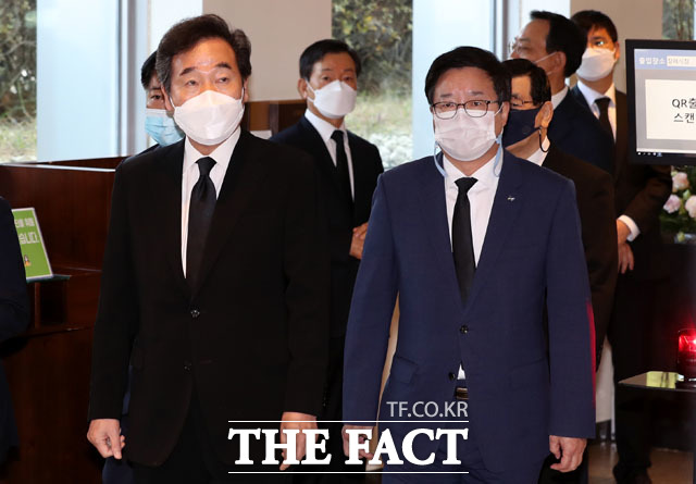 [더팩트 | 사진공동취재단] 이낙연 더불어민주당 대표가 26일 오전 서울 강남구 삼성서울병원에 마련된 고 이건희 삼성그룹 회장의 빈소로 향하고 있다.