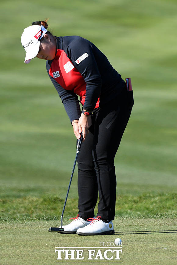 [더팩트ㅣ인천=남용희 기자] KLPGA 투어 하나금융그룹 챔피언십 4라운드가 8일 인천 영종도 스카이72 골프앤리조트에서 열린 가운데 장하나가 퍼팅을 하고 있다.