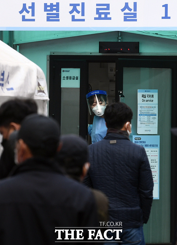 [더팩트ㅣ이동률 기자] 코로나 확진자가 200명이 넘은 15일 오후 서울 중구 국립중앙의료원 선별진료소에서 많은 시민들이 검사를 받기 위헤 대기하고 있다.