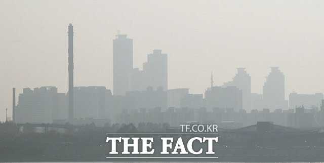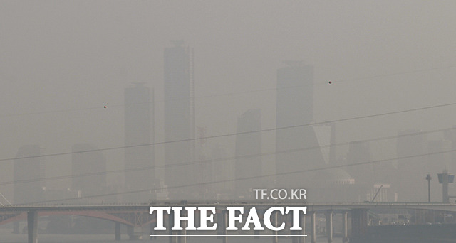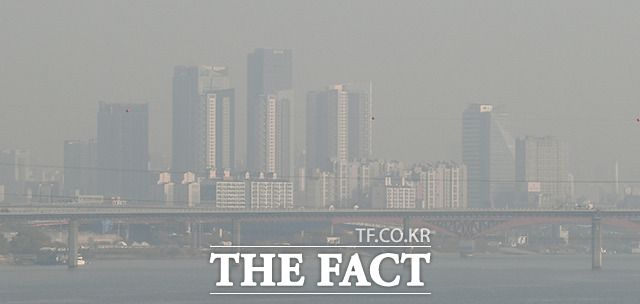 [더팩트ㅣ이동률 기자] 중국발 미세먼지가 기승을 부리고 있는 16일 오후 서울 마포구 가양대교에서 바라본 서울도심이 미세먼지로 인해 답답한 모습을 보이고 있다.