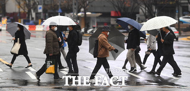 [TF포토] 우산 쓰고 출근하는 직장인들