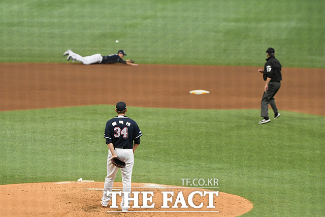 [더팩트|이선화 기자] '2020 KBO 포스트시즌' 한국시리즈 5차전 두산 베어스와 NC 다이노스의 경기가 23일 오후 서울 구로구 고척스카이돔에서 열린 가운데 5회말 두산 플렉센이 NC 알테어가 친 공을 바라보고 있다.seonflower@tf.co.kr사진영상기획부 photo@tf.co.kr