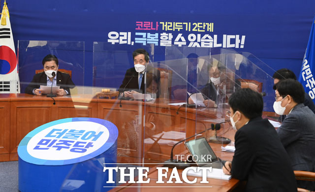 [더팩트ㅣ국회=남윤호 기자] 이낙연 더불어민주당 대표(가운데)가 4일 오전 서울 여의도 국회에서 열린 최고위원회의에서 모두발언을 하고 있다.