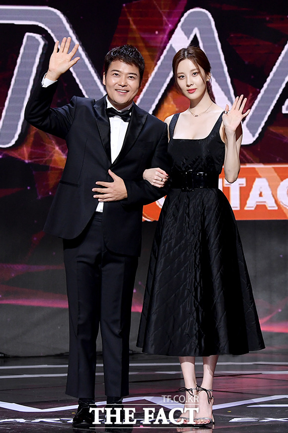 [더팩트ㅣ이선화 기자] 더팩트가 주최하고 팬앤스타(FAN N STAR)가 주관하는 '2020 더팩트 뮤직 어워즈(THE FACT MUSIC AWARDS, TMA)'가 12일 오후에 열려 방송인 전현무(왼쪽)와 가수 서현이 포즈를 취하고 있다.