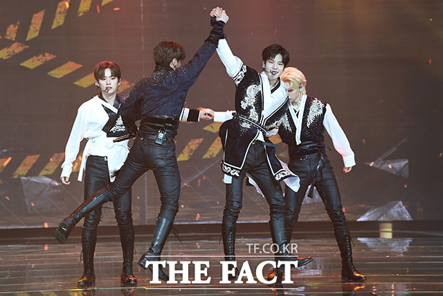 [더팩트ㅣ사진영상기획부] 더팩트가 주최하고 팬앤스타(FAN N STAR)가 주관하는 '2020 더팩트 뮤직 어워즈(THE FACT MUSIC AWARDS, TMA)'가 12일 오후에 열려 그룹 스트레이 키즈가 멋진 무대를 펼쳐보이고 있다.
