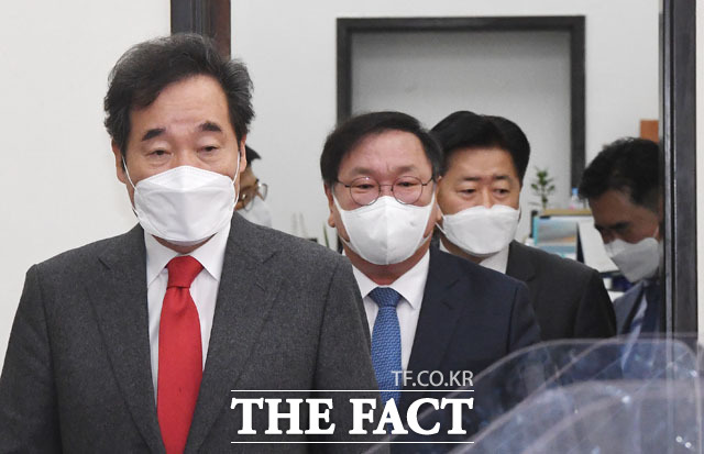 [더팩트ㅣ국회=남윤호 기자] 더불어민주당 이낙연 대표(왼쪽)와 김태년 원내대표를 비롯한 지도부가 14일 오전 서울 여의도 국회에서 열린 최고위원회의에 참석하고 있다.