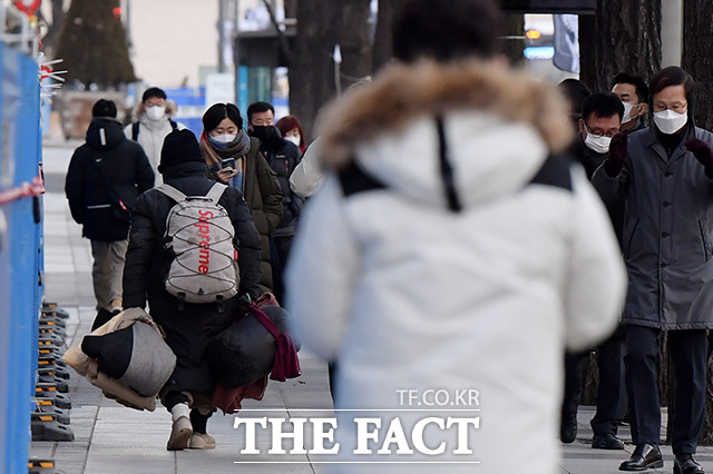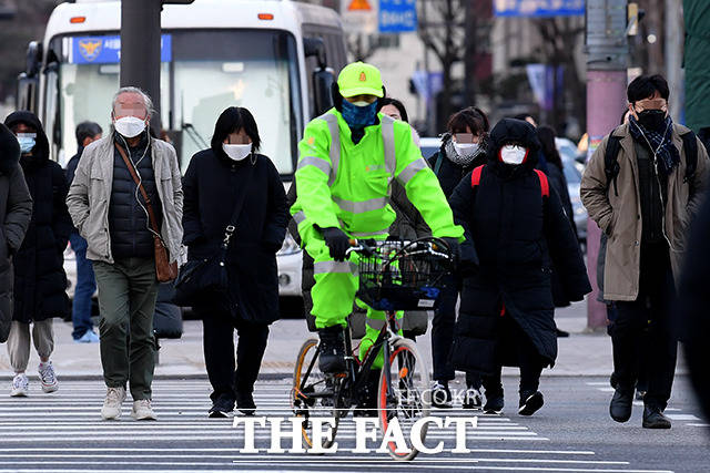 [더팩트ㅣ이선화 기자] 아침 기온이 영하 10도를 기록하며 한겨울 날씨를 보이고 있는 15일 오전 서울 종로구 광화문사거리에서 출근길 시민들이 두꺼운 옷차림으로 발걸음을 재촉하고 있다.