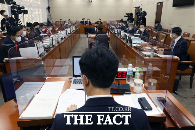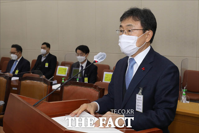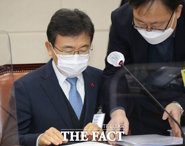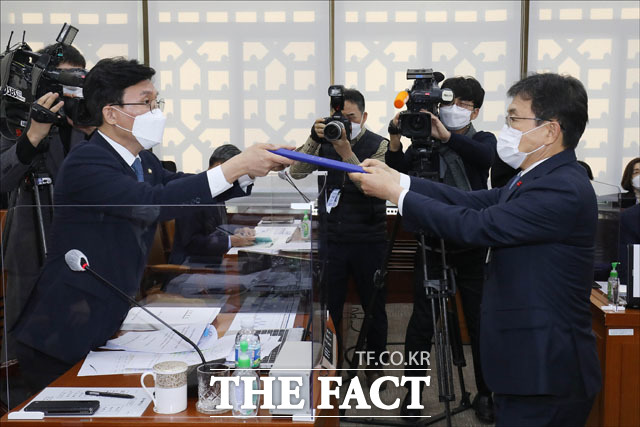 [더팩트ㅣ국회=남윤호 기자] 권덕철 보건복지부 장관 후보자가 22일 오전 서울 여의도 국회 보건복지위원회 전체회의에서 열린 인사청문회에 출석해 후보자 선서를 하고 있다.