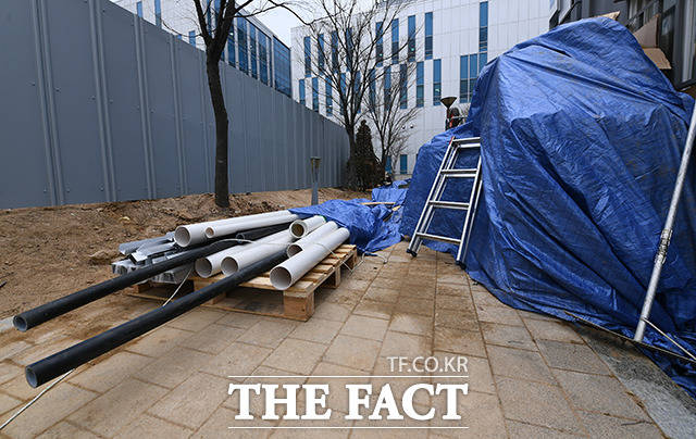 [TF사진관] '병상부족을 막아라'...서울의료원에 설치된 이동병상
