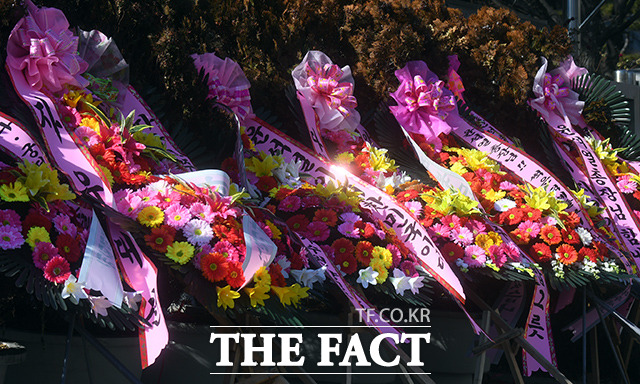 [더팩트ㅣ이동률 기자] 윤석열 검찰총장이 다시 업무에 복귀한 25일 오후 서울 서초구 대검찰청 앞에 윤 총장 응원 화환이 놓여 있다.