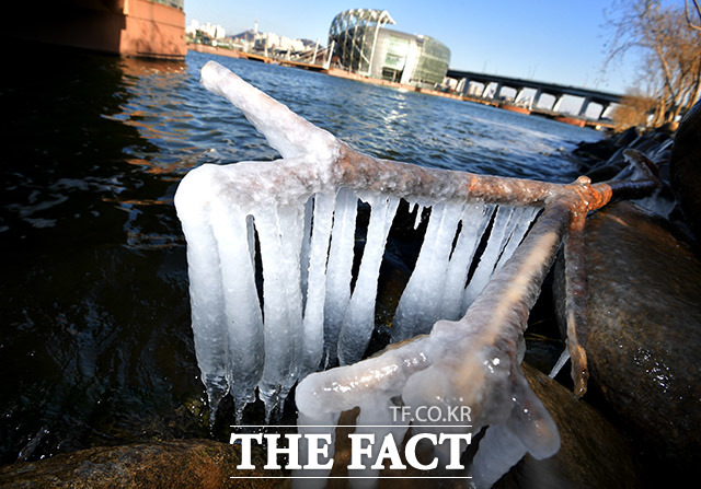 [더팩트ㅣ이덕인 기자] 전국에 영하 10도 이하의 매서운 세밑한파가 몰아친 30일 오후 서울 서초구 반포한강공원의 한강에 고드름이 맺혀있다.