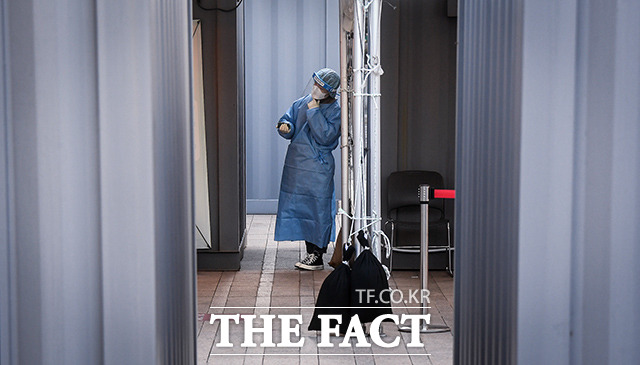 [더팩트ㅣ이동률 기자] 코로나19 확진자가 이틀째 1000명대를 기록한 30일 오전 서울 중구 서울광장 선별진료소에서 의료진이 검사자를 기다리고 있다.