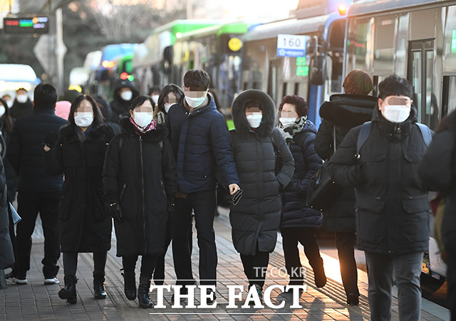[더팩트ㅣ이동률 기자] 북극한파가 찾아온 6일 오전 서울 영등포구 여의도역 인근의 시민들이 두꺼운 옷을 입고 발걸음을 재촉하고 있다.