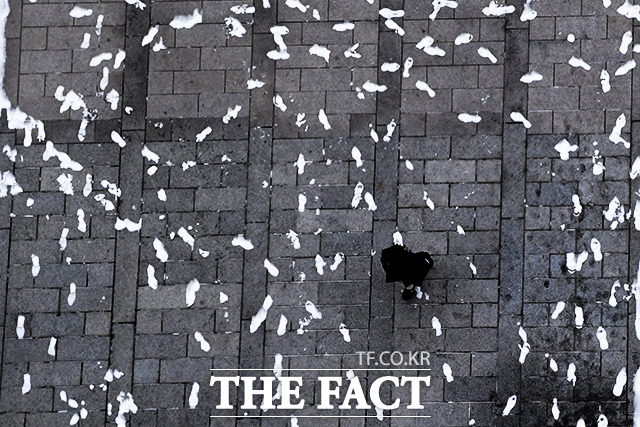 [더팩트ㅣ이선화 기자] 전날 내린 폭설과 북극발 한파로 기온이 최저 영하 20도까지 떨어진 7일 오전 서울 종로구 광화문사거리에서 출근길 시민들이 두꺼운 옷차림으로 발걸음을 재촉하고 있다.