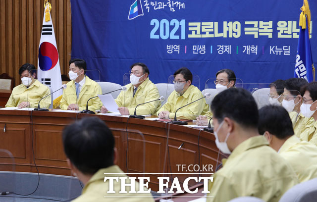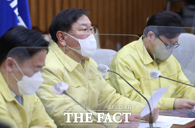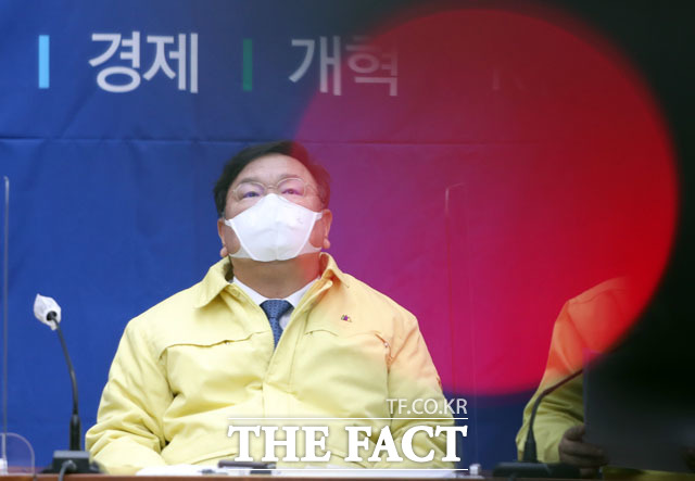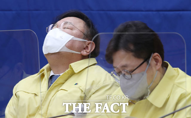 [더팩트ㅣ국회=남윤호 기자] 김태년 더불어민주당 원내대표(왼쪽)가 7일 오전 서울 여의도 국회에서 열린 정책조정회의에 참석해 생각에 잠겨 있다.