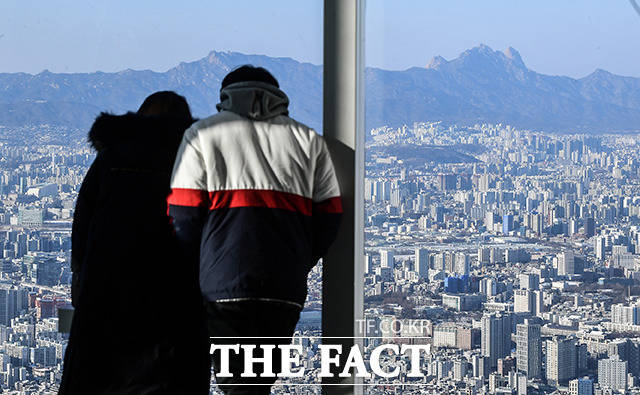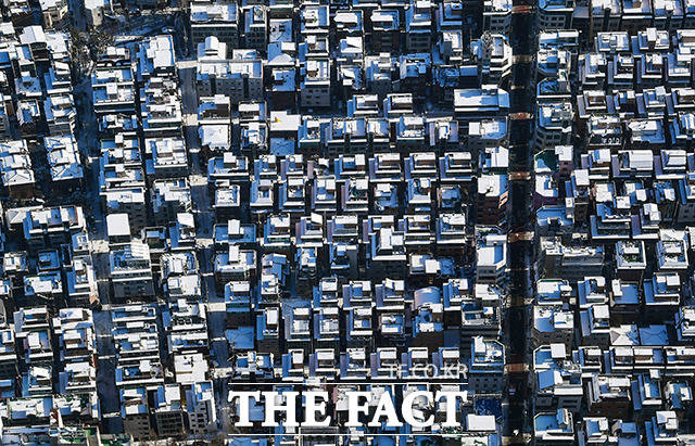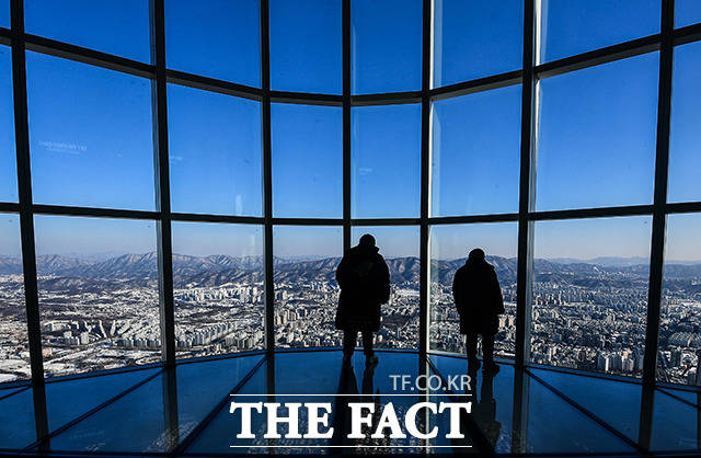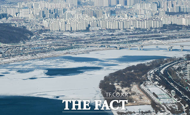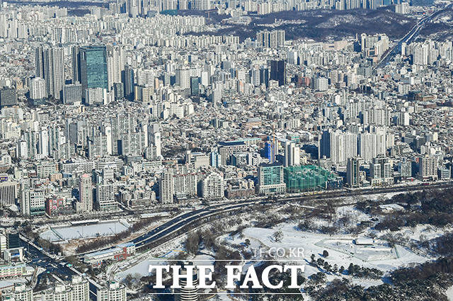 [더팩트ㅣ이동률 기자] 북극발 한파가 지속되는 7일 오후 서울 송파구 롯데월드타워 서울스카이에서 바라본 서울 도심에 새하얀 눈이 쌓여있다.