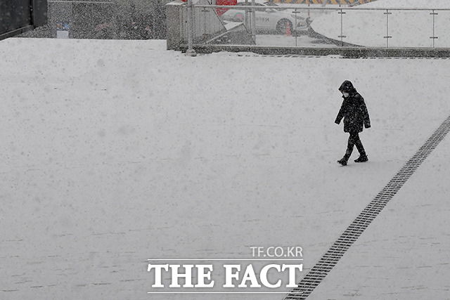 [더팩트ㅣ이선화 기자] 전국 대부분 지방에 폭설이 예보된 18일 오전 서울 중구 서울역 앞에서 시민들이 내리는 눈을 피해 걸음을 재촉하고 있다.