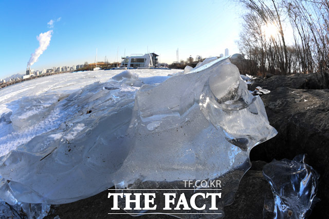 [더팩트ㅣ임세준 기자] 중부지방에 한파특보가 발효된 19일 오전 서울 영등포구 여의도인근 한강에 얼음이 얼어있다. 서울 등 중부와 경북 내륙을 중심으로 한파특보가 발효 중인 가운데 이번 추위는 내일 낮부터 차츰 누그러질 것으로 예상된다.