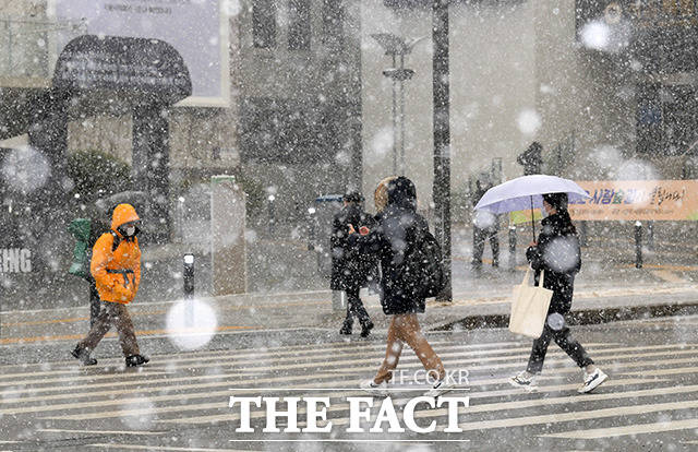 [더팩트ㅣ남용희 기자] 서울과 경기북부에 대설주의보가 내려진 28일 오전 서울 종로구 광화문 일대에 함박눈이 내리고 있다.