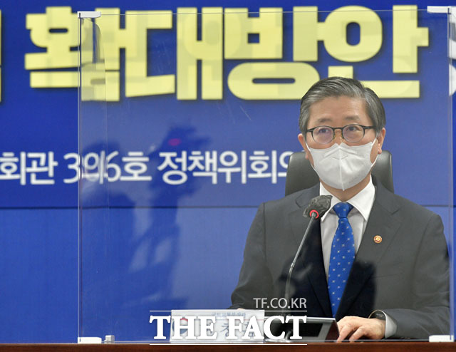 [더팩트ㅣ국회=남윤호 기자] 변창흠 국토교통부 장관이 4일 오전 서울 여의도 국회에서 열린 대도시권 주택공급 확대방안 당정협의에 참석해 모두발언을 하고 있다.
