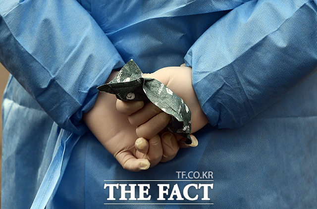 [더팩트ㅣ이동률 기자] 설 연휴를 하루 앞둔 10일 오전 서울 용산구 서울역 광장에 마련된 코로나19 임시선별검사소에서 의료진이 손난로를 이용해 추위를 녹이고 있다.