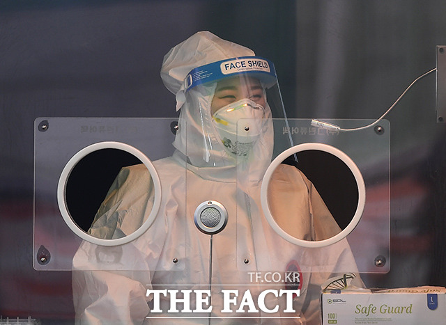[더팩트ㅣ이동률 기자] 설 연휴를 하루 앞둔 10일 오전 서울 용산구 서울역 광장에 마련된 코로나19 임시선별검사소에서 의료진이 잠시 휴식을 취하며 미소를 짓고 있다.