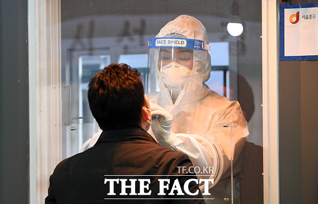 [더팩트ㅣ임영무 기자] 설 명절인 12일 오전 서울역 광장에 마련된 코로나19 임시선별검사소를 찾은 시민들이 검사를 받고 있다.