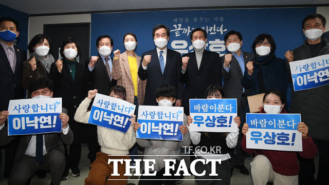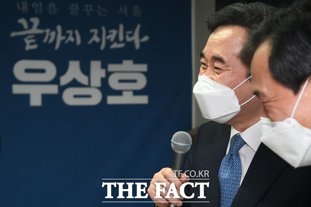 [더팩트ㅣ남윤호 기자] 이낙연 더불어민주당 대표가 19일 오후 서울 영등포구에 마련된 더불어민주당 우상호 서울시장 경선후보의 선거 캠프를 방문해 인사말을 하고 있다.