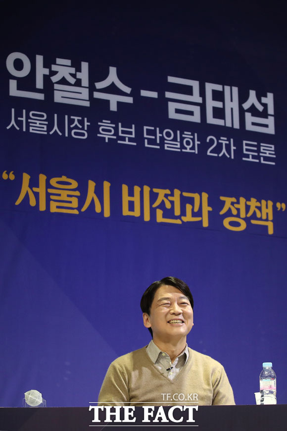 [더팩트ㅣ국회사진취재단] 서울시장 보궐 선거에 출마한 국민의당 안철수 예비후보가 25일 오후 서울 영등포구 KNK디지털타워에서 열린 금태섭 무소속 후보와의 단일화 2차토론에 앞서 준비를 하고 있다.