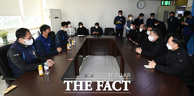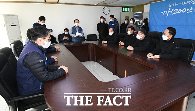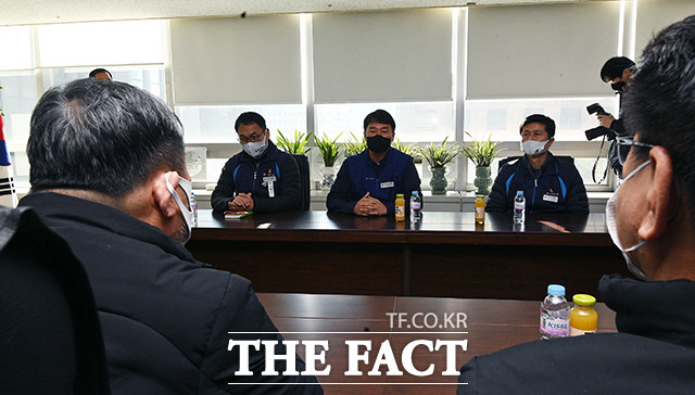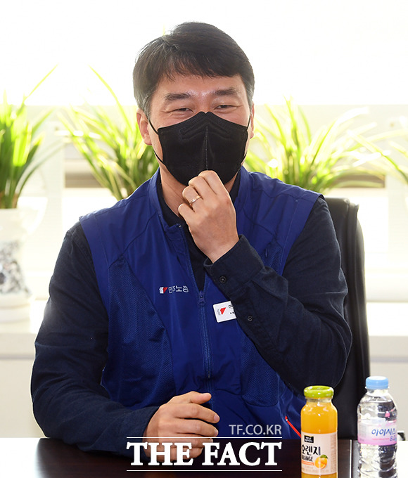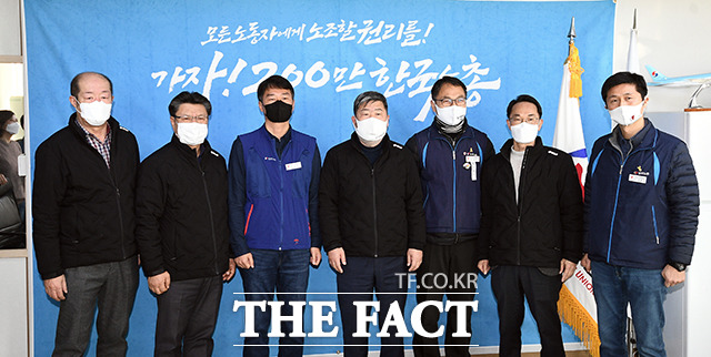 [더팩트ㅣ이동률 기자] 양경수 민주노총 위원장과 김동명 한국노총 위원장 등 양대노총 지도부가 26일 오전 서울 영등포구 한국노총 위원장실에서 만남을 갖고 대화를 나누고 있다.