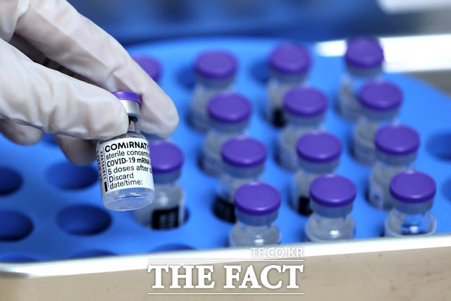 [더팩트ㅣ사진공동취재단] 화이자의 코로나19 백신 접종이 시작된 27일 오전 서울시 중구 국립중앙의료원 중앙예방접종센터 접종실에서 의료진이 화이자 백신을 해동하고 있다.