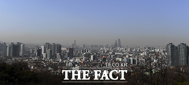[더팩트ㅣ남용희 기자] 중국발 황사 등의 영향으로 서울 등 전국에 미세먼지 농도가 '나쁨' 수준을 보이는 17일 오전 서울 용산구 남산공원에서 바라본 서울 시내에 뿌연 먼지띠가 형성돼 있다.