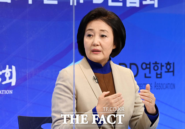 [더팩트ㅣ국회사진취재단] 박영선 더불어민주당 서울시장 후보(가운데)가 23일 서울 목동 방송회관에서 한국기자협회·방송기자연합회·한국PD연합회 주최로 열린 서울시장 후보 초청 토론회에 참석해 발언을 하고 있다.