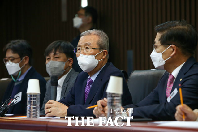 [더팩트ㅣ국회사진취재단] 김종인 국민의힘 비상대책위원장이 23일 오후 서울 마포구 DMC첨단산업센터에서 열린 중소기업위원회 현장간담회에 참석해 인사말을 하고 있다.