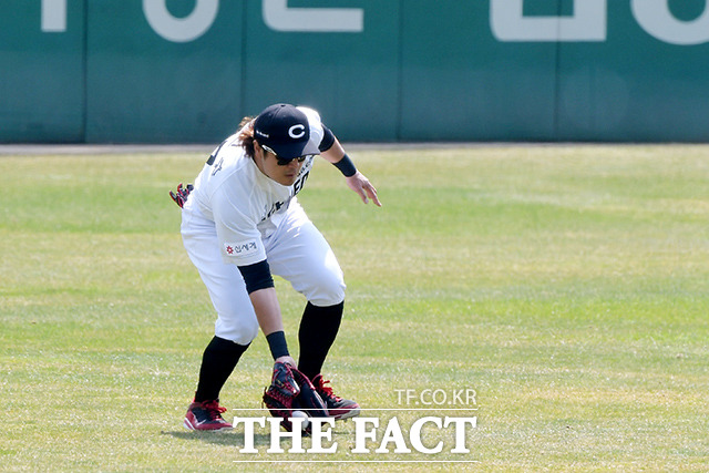 [더팩트|인천=이선화 기자] 25일 오후 인천 미추홀구 인천 SSG 랜더스 필드에서 2021 KBO리그 시범경기 삼성 라이온즈와 SSG 랜더스의 경기가 열린 가운데 1회초 SSG 추신수가 삼성 피렐라의 타구를 잡고 있다.