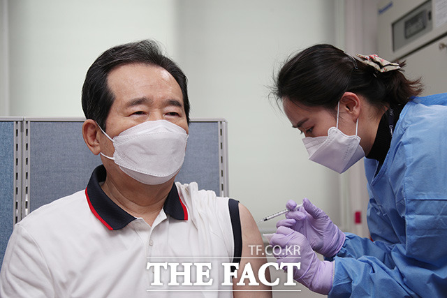 [더팩트ㅣ임영무 기자] 정세균 국무총리가 26일 오후 서울 종로구보건소에서 코로나19 예방을 위해 아스트라제네카(AZ) 백신을 접종받고 있다.