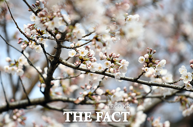 [더팩트ㅣ임영무 기자] 서울지역의 벚꽃이 최근 100년 사이 가장 이른 개화를 보인 26일 오후 서울 영등포구 여의도 윤중로 벚꽃이 꽃을 활짝 피우고 있다.