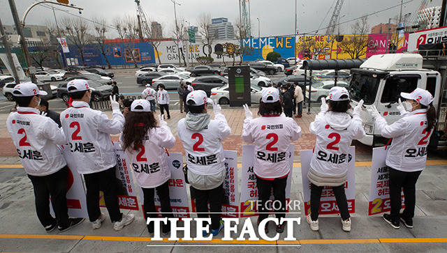 오세훈 후보 지지 호소하는 오 후보 캠프 [TF사진관]