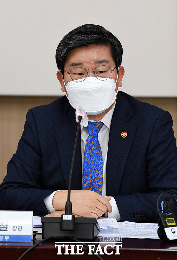 [더팩트ㅣ임영무 기자] 전해철 행정안전부 장관이 1일 오전 서울 종로구 정부서울청사에서 열린 제4기 공공데이터전략위원회 2차 회의에 참석해 발언하고 있다.