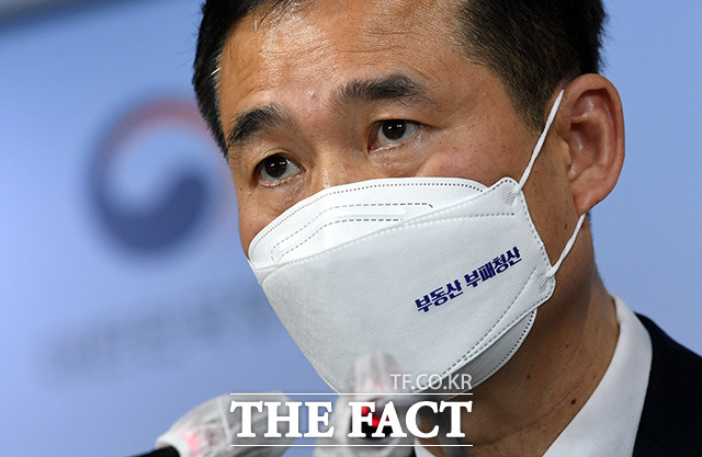 [더팩트ㅣ임영무 기자] 이건리 국민권익위원회 부위원장이 1일 오후 서울 종로구 세종대로 정부서울청사에서 더불어민주당 소속 국회의원 174명의 부동산 거래 전수조사 착수와 관련해 브리핑을 갖고 있다.