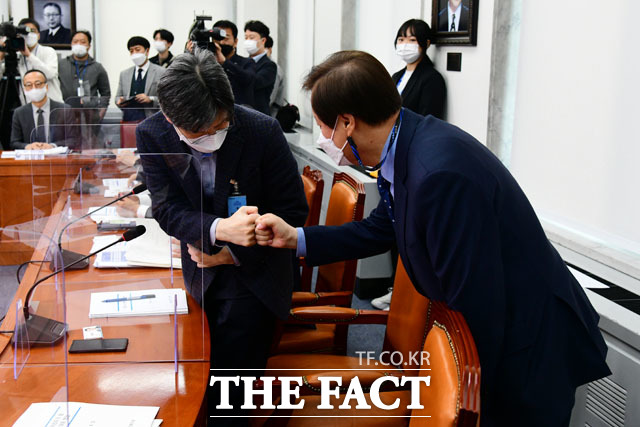 [더팩트ㅣ국회=남윤호 기자] 도종환 더불어민주당 비상대책위원장(오른쪽)이 13일 오전 서울 여의도 국회에서 열린 코로나19 대응 관련 전문가 간담회에 참석해 방지환 국립중앙의료원 중앙감염병병원운영센터장과 인사하고 있다.ilty012@tf.co.kr사진영상기획부 photo@tf.co.kr