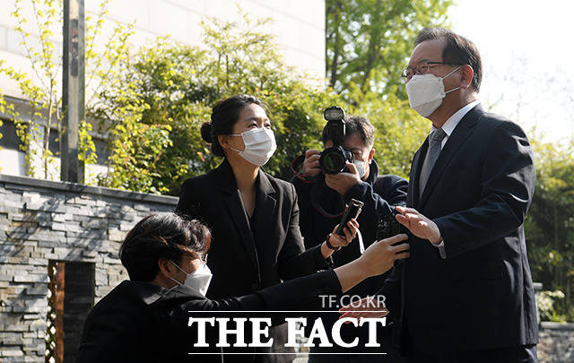 [더팩트ㅣ임영무 기자] 김부겸 국무총리 후보자(오른쪽)가 19일 오전 인사청문준비사무실이 마련된 서울 종로구 통의동 금융감독원 연수원으로 출근하며 취재진의 질문에 답변을 하고 있다.