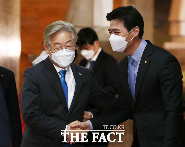 [더팩트ㅣ국회=남윤호 기자] 이재명 경기도지사가 20일 오후 서울 여의도 국회에서 윤호중 더불어민주당 비대위원장과의 면담을 위해 원내대표실로 이동하고 있다.