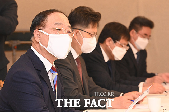 [더팩트ㅣ임영무 기자] 홍남기 경제부총리겸 기획재정부 장관이 21일 오전 서울 종로구 정부서울청사에서 열린 부동산시장 점검 관계장관회의에서 모두발언을 하고 있다.