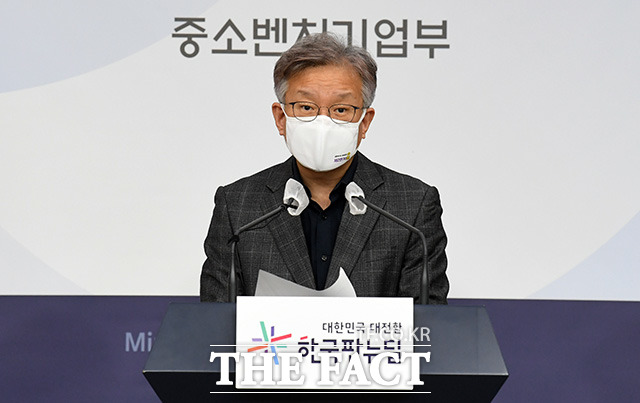 [더팩트ㅣ임영무 기자] 권칠승 중소벤처기업부 장관이 26일 오전 서울 종로구 정부서울청사 별관 브리핑실에서 한국 창업 생태계 변화 분석 결과를 발표하고 있다.