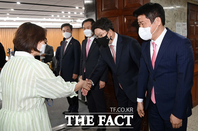 초선의원과 토론회 나선 국민의힘 원내대표 후보 [TF사진관]